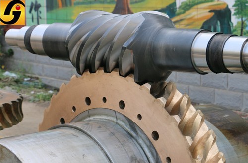 山東省德州市金宇機(jī)械有限公司生產(chǎn)的大模數(shù)蝸輪蝸桿副,無(wú)噪音和穏嚙合,為了防止處于嚙合的蝸桿不產(chǎn)生沖擊和振動(dòng),對(duì)蝸桿入口和出口處進(jìn)行了倒坡修型處理。