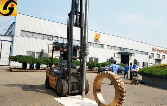 3頭大型蝸輪蝸桿副,蝸桿長度為4米,模數(shù)為33磨,金宇技術(shù)開發(fā)產(chǎn)品。